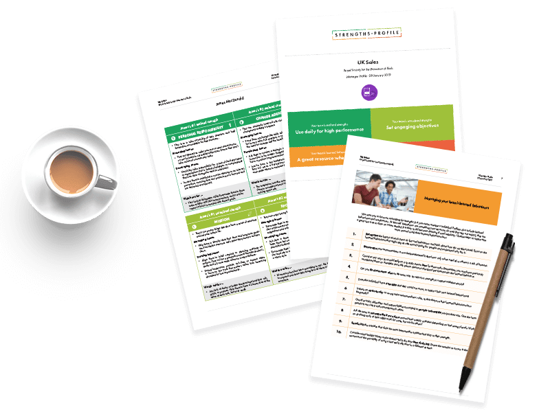 With each member's top two realised and unrealised strengths revealed, you can focus your development conversations for each person in one simple Profile. Offering tips and development advice on these four strengths, use the Profile to maximise enthusiasm and productivity in your one-to-ones and for focussed conversations. The Profile also offers general advice for managing learned behaviours and weaknesses in your people