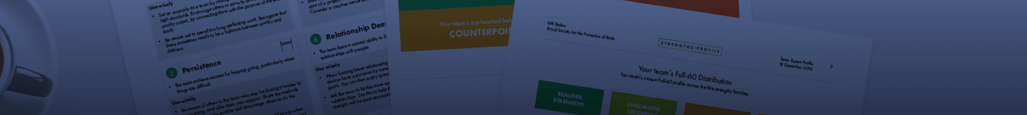 The strengths session was extremely insightful. We are spending more time together as a group to continue this learning in order to support our strategy and keep the momentum going. Team members are frequently referring to their strengths when interacting with each other, and a level of openness has been achieved that is proving very useful both in day-to-day communication and pursuit of our longer-term goals.